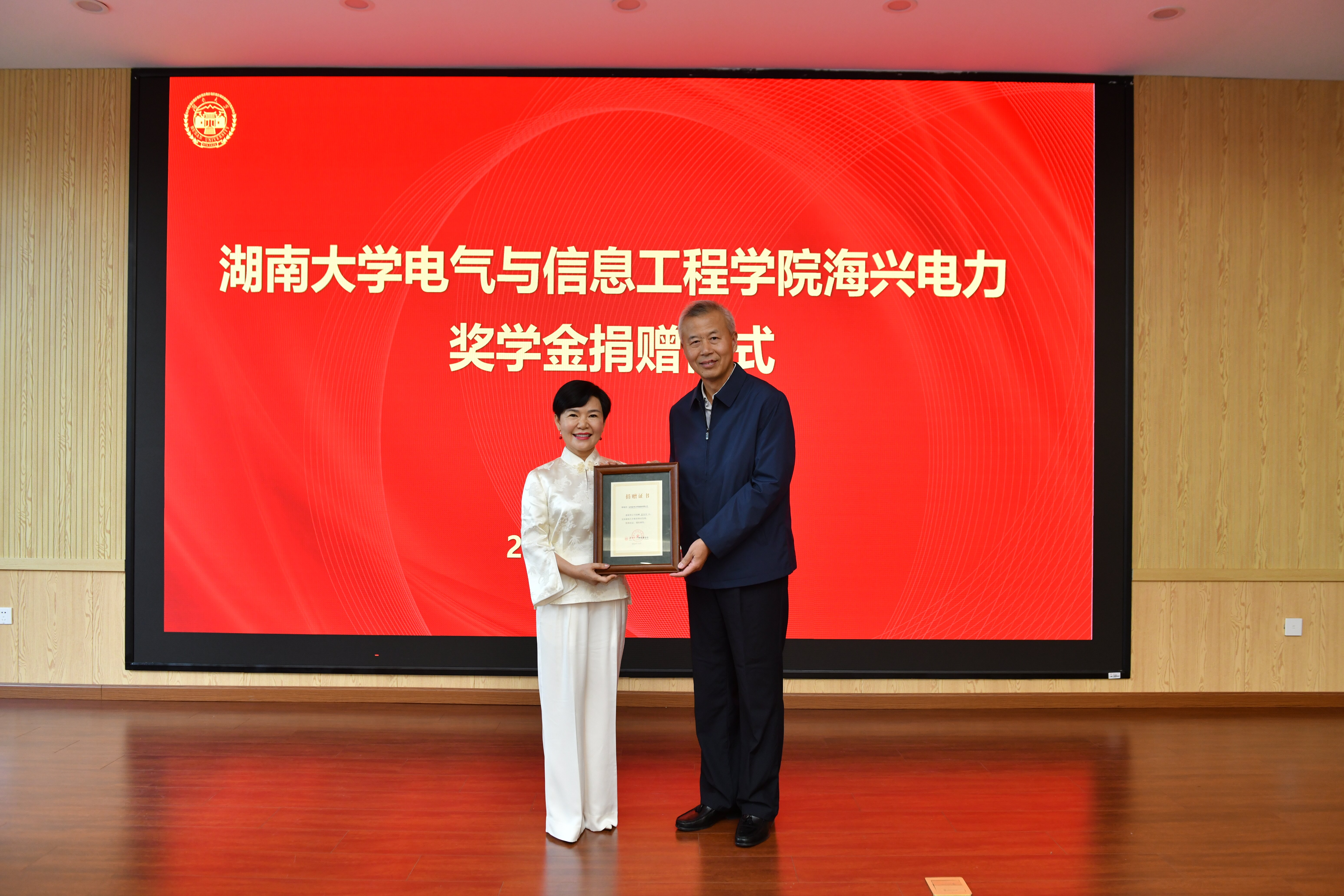 进行深度交流,共同发展进步。她深情回忆了自己在湖大的求学之路,早在40年前的大学课堂上,便埋下了回馈母校的种子,如今通过设立海兴电力奖学金来感谢母校的教诲与哺育,希望学子们珍惜在湖大的美好时光,以好奇之心,追求真理,实事求是,不断创新,在知识的碰撞中不断提升自己的综合素质。